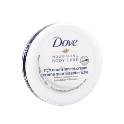 Dove Cream for hands, face and body Jar Nutrition Intense 75 ml Hand, face and body cream formulated to help strengthen the skin's natural barrier and retain its hydration Fast absorbing hand, face and body cream nourishes and protects skin from dryness Moisturizing and nourishing body cream with a pleasant fragrance Provides smooth and beautiful skin; dermatologically tested moisturizer Globally Dove does not test on animals
