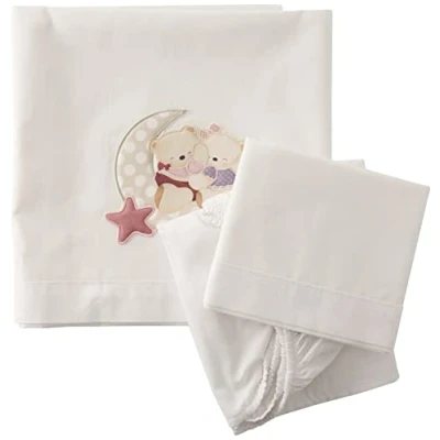 INTERBABY Mini Cot Sheets, Lovely Bear, White, Pink