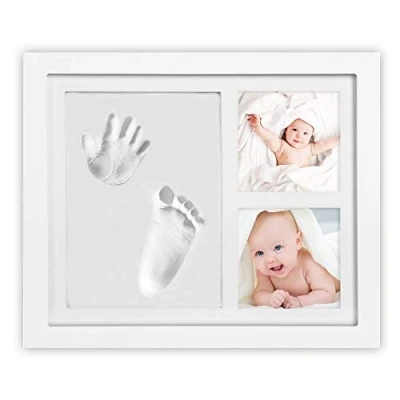 Frame for two pictures and two baby footprints for hand and footprints. Non-toxic - Suitable for 0-3 years old baby. Easy to use and quick drying. Perfect as a gift for a christening, birth, baby shower, etc.