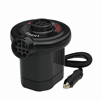 Car-powered Quick-Fill electric pump for inflating airbeds, rafts, and more 12-volt DC power plug for connecting to car power outlets Includes three interconnecting nozzles Inflates even the largest of inflatables in no time Sleek, compact design fits perfectly in the palm of your hand