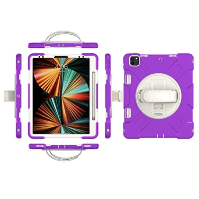360° Rotating Hand Strap & Shoulder Strap & Swivel Stand The adjustable hand strap helps you hold your tablet with ease, as soft and comfortable as your grip. You can get a landscape view or vertical view as needed. 3 LAYERS DURABLE PROTECTION Flexible outer silicone with rigid PC inner shell and top PC frame provides protection for your tablet. The outer silicone layer is very thick and soft to absorb shock from accidental drops or shocks. The case gives you easy access to all buttons, controls and ports without having to remove them from the case, the shock protection keeps you away from bumps, and the port covers of the case keep dust away from the tablet. The built-in pen holder provides new accessibility features. Cut-outs provide easy access to the new features of the tablet screen/charging port/speaker. SOFT WRIST STRAP & SWIVEL STAND Provides the safest protection and more convenience when you play or work with your iPad. Enjoy better entertainment and free your hands. The 360 rotating stand provides multi-angle viewing with a soft grip tape, making it easier to use your iPad when you are outdoors, working and playing with your kids.