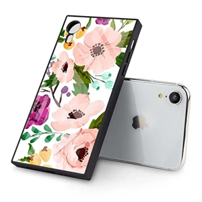iPhone Xr Square Mobile Phone Case with Fancy Flower TPU Edge Full Body Protection Reinforced Corners