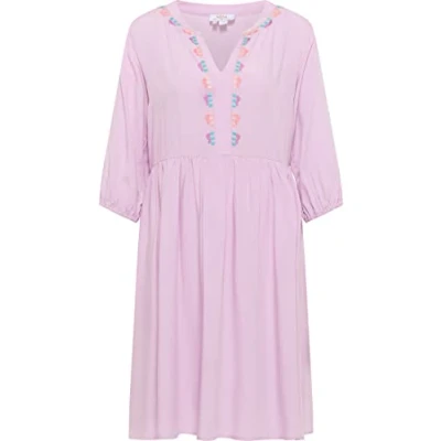Lightweight summer dress Embroidered V-neck Ruffles on the sleeve ends Ruffle at skirt hem With inner lining