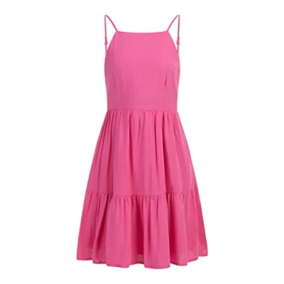 Viscose summer dress Tiered Valances A-line skirt Sleeveless design Adjustable straps