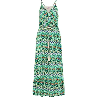 Maxi dress with print Cotton with ethnic print Wrap top Elastic waist band with drawstring Shiny cord with tassels
