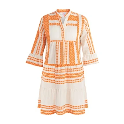 Airy summer dress Made from lightweight cotton blend Trendy, woven patterns Half trumpet sleeves Small stand-up collar with buttons