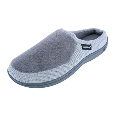 Isotoner Men's Microterry and Waffle Travis Slip on Hoodback with Memory Foam Slipper, Ash, 12/13 UK