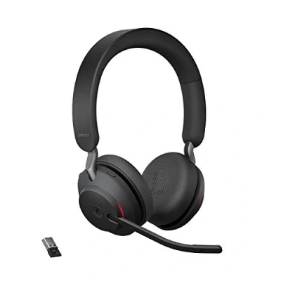 Jabra Evolve2 65 Wireless PC Headset Noise Cancelling Microsoft Teams Certified Stereo Headphones With Long Lasting Battery USB A Bluetooth Adapter Black