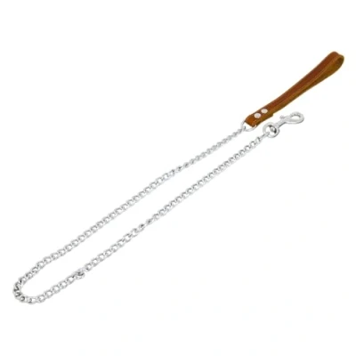 JACK AND VANILLA, Chain Lead for Dogs, Fat Leather, Cognac, Size 16 mm x 110 cm