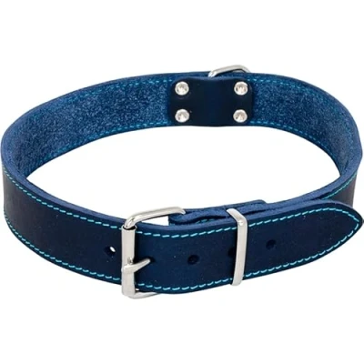 JACK and VANILLA, Leather Dog Collar, Normal, Comfortable Durable, Secure Buckle, Adjustable, Blue, 30 mm x 65 cm, Fat Model