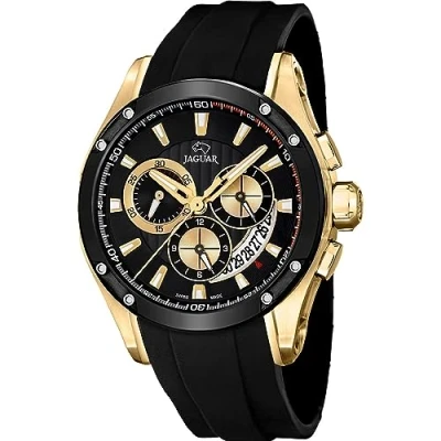 A chic wristwatch, a sporty watch or a trendy watch with an interchangeable strap? At Brandfield you have a wide choice of the finest watch brands for your unique look. Go for a watch that suits you and enjoy it for years! At Brandfield you will find the most beautiful jaguar watches for the best price, such as this Jaguar Special Edition Black Watch J691/2 for men. The watch is equipped with a quartz timepiece. This beautiful dial is black, gold, multi-colored and is covered with high-quality sapphire glass. The watch case is made of stainless steel and has a diameter of 45 mm. The colour of this watch strap black and has a width of 20 mm. The watch strap is made of silicone. With this beautiful watch you will always know the right time every day!