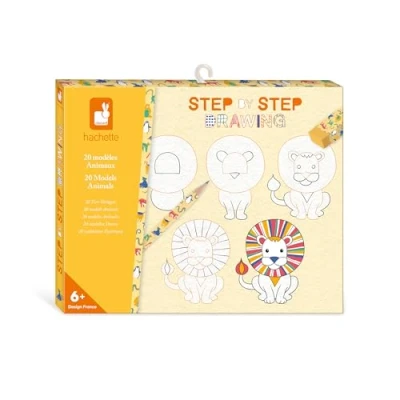 LEARN TO DRAW: In this creative kit, you will find everything you need to easily reproduce 20 drawings broken down into several stages, all in the animal style. Each step is simple, making drawing easy and fun. HOURS OF FUN DRAWING: Come and discover 20 models of drawings on the world of savannah animals, sailors and many more... and learn all about the creation of these animals! STEP BY STEP DRAWING: This children's creative drawing kit is part of our "Step By Step Drawing" range, a series of sets allowing children aged 6 to 10 to learn to draw step by step. FEATURES: This Janod set contains 20 drawing templates, 25 white sheets, 1 pencil and 1 eraser. Estimated playing time at 3:30. Manual activity for children aged 7-10 years. STEP BY STEP DRAWING: This creative kit belongs to a collection developed in collaboration with Editions Hachette, known for their know-how in children's creative hobbies and knowing how to adapt to the needs and expectations of each age.