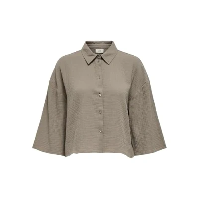 JDY Jdytheis LIFE 3/4 CROP Buttondown blouse, Women's, Size: Medium, Brindle