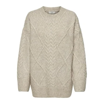 JDY Women's Knit Fit Sweater Long Sleeve Roundneck Knitwear, Oatmeal, XL