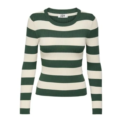 JDY Women's Plum L/S O Neck KNT Noos Jumper Knitted, Trekking Green/Stripes:w Eggnog Stripes, XS