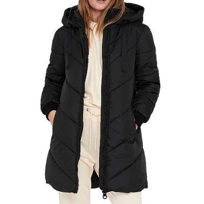 JDY Women's Skylar OTW Noos Padded Hood Jacket Quilted Coat, black, XL