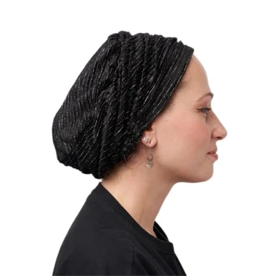 Jewish Head Covering for Women Velvet Dressy Beret Tichel Snood Headcovering, Black, One Size