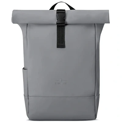 Padded laptop compartment: In the large main compartment there is a padded laptop compartment for notebooks up to 16 inches and a compartment for small items. A pocket on the outside provides space for a water bottle. High wearing comfort: the back and straps are padded with breathable mesh material. The backpack dimensions are within the carry-on limits. Secret compartment: In a small hidden outer compartment on the back you can store your mobile phone or keys. Flexible roll top: with the daypack in courier style you are maximally flexible. Thanks to the roll-top function, the backpack can be quickly and easily adjusted in size from 14.5 litres to 17.5 litres. Dimensions: 41 x 29 x 11 cm rolled up; 59 x 29 x 11 cm unrolled