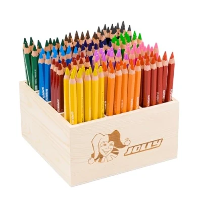 JOLLY Classpack Wood, X Big, Basic Colours, Wooden Box with 144 Colouring Pencils, 12 Shatterproof and Non Toxic, Extra Thick Lead, Ideal for School Nursery
