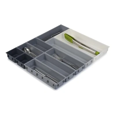Individual compartments clip easily together on all sides Modular design can be customised to fit drawer space Perfect for organising a wide variety of items such as cutley, utensils, stationery, tools and craft accessories Multiple sets can be joined together for even more storage space Self-adhesive non-slip feet included. Care and use:Wipe clean with a damp cloth