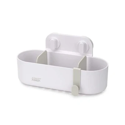 Easy tool-free installation using super-grip suckers Movable dividers for organised storage Hanging hook for sponges and flannels Self-draining design Easy to clean Note: check mounting instructions through gallery images; for maximum suction, remove, wipe and reapply suckers every 3 months