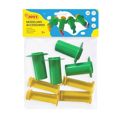 With the modelling accessories from Jovi open up completely new possibilities for working with plasticine. Let your imagination run wild You can fill in the kneading presses. The pressing result is four differently shaped kneading rods, which you can also process further Ideal for soft clays such as Jovi Soft Dough In combination with the Jovi modelling tools and cookie cutters, small and large children can create true works of art Box contents: 4 different mini plastic kneading presses, Manufacturer: Jovi
