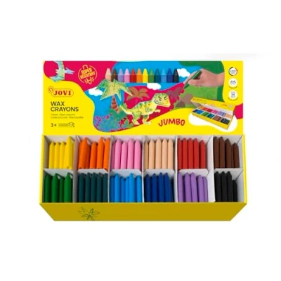 Jovi Jovicolor Wax Crayons Unscented Shatterproof Easy to Wash Out All Ages 300 Pieces in 12 Colours and 1 Sharpener