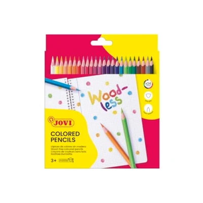 JOVI Woodless coloured pencils, wood free, triangular shape, from 3 years, shatterproof, 24 colours in a box