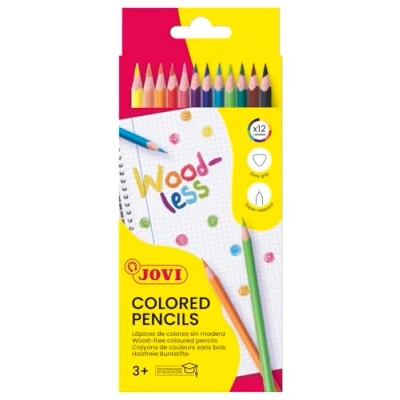 Jovi Woodless Colouring Pencils, Wood Free, Triangular Shape, Ages 3+, Shatterproof, 12 Colours in a Box