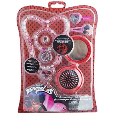 Joy Toy Miraculous 65988 Figures & Charactere Jewellery Set with 2 Glitter Hair Clips, Pearl Necklace, Bracelet, Ring and Pop Up Brush Mirror on Blister Card 20 x 28.5 cm Girls