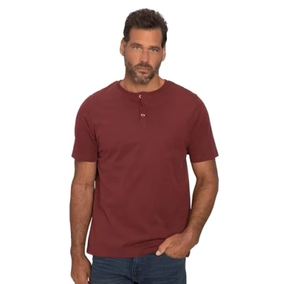JP 1880 Men's Basic Henley t Shirts, Rust, 6XL Plus