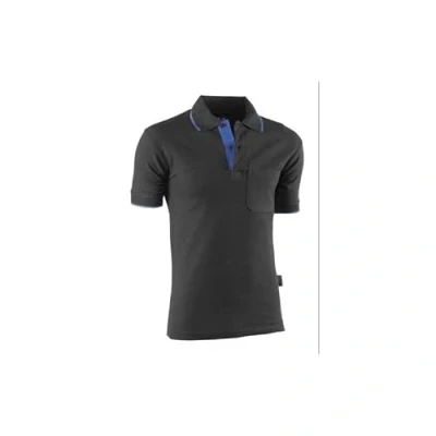 Juba Short sleeve polo shirt 100% cotton 200 g/m², Black with blue details SIZE: XL