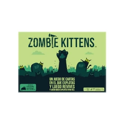 Muchas Formas de Jugar - Juega Zombie Kittens por sí solo o combínalo con Exploding Kittens para desbloquear un mega juego. ¡Sí! Esto significa que puedes jugar con hasta 5 jugadores o combinarlo con cualquier otra versión de Exploding Kittens para descubrir nuevas formas de jugar Juega Cartas desde la Tumba - ¡Si explotas, aún puedes jugar mientras estás muerto Use the action cards to move and avoid the Exploding Kitten and rise among the dead with the Zombie Kitten card to get revenge