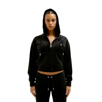 Juicy Couture Iccle Hoodie Kapuzensweatjacke, Sweatjacke mit Kapuze und Reißverschluss aus Velour in Verschiedenen Farben Women's Hooded Sweatshirt, Black, XL