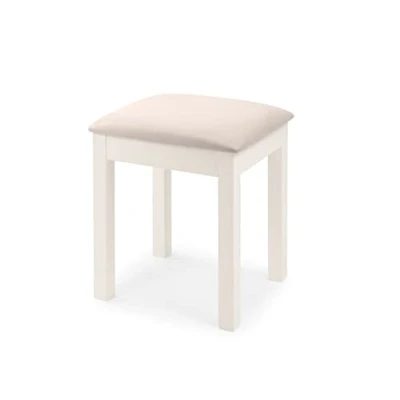 Panelled New England style with detailed chamfered cabinetry. Surf White lacquered finish. Upholstered padded seat. Part of Julian Bowen's Maine bedroom collection. Height: 48cm, Width: 41cm, Depth: 35cm