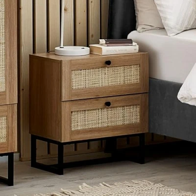 Natural rattan fronts. Industrial style base. Available in Oak or Black. Part of the Padstow Bedroom Collection. Please note, colour may vary slighlty between product and image depending on lighting.