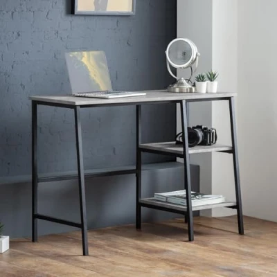 Concrete Effect Foil. Black coated metal frame. Modern design suitable for a range of décor. Part of the Julian Bowen Staten dining and Occasional range. Height: 72cm, Width: 104cm, Depth: 45cm