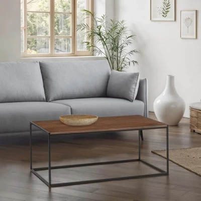 Julian Bowen Tribeca Coffee Table, Metal & Mdf, Black/Walnut, Height: 45, Width: 110, Depth: 60cm