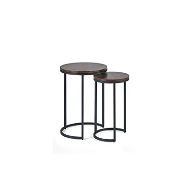 Julian Bowen Tribeca Round Nesting Side Tables, Walnut Effect/Black