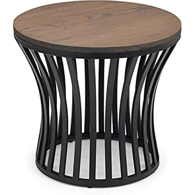 Statement black metal frame with a warm mocha elm finished top. eye-catching statement piece. Narrow Base. Part of the Julian Bowen Washington Occasional Collection. Height: 51cm, Width: 56cm, Depth: 56cm