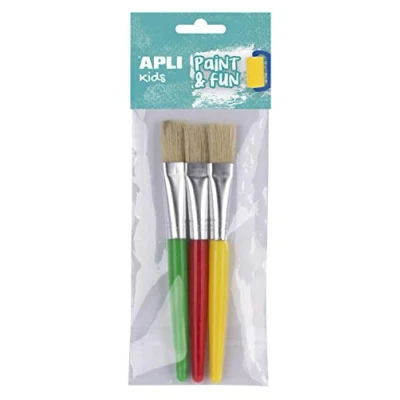 Set of 3 Jumbo plastic brushes size 16x165mm Flat tip brushes and synthetic bristles with handles in three assorted colours: green, red and yellow. Painted activities have a high teaching value: it promotes the development of creative arts; it enhances concentration, and sensitivity. Discover the Paint&Fun collection from APLI Kids, an assortment of basic products ideal for little ones to familiarise themselves with the world of painting. Recommended for children aged 3 years and above.