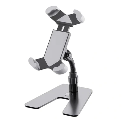 Smartphone holder flat, steel base materials: plastic, steel compatible with smartphones colour: black adjustable width: 55 to 85mm base dimensions: 148 x 144mm Height: 200mm Weight: 0.62 kg