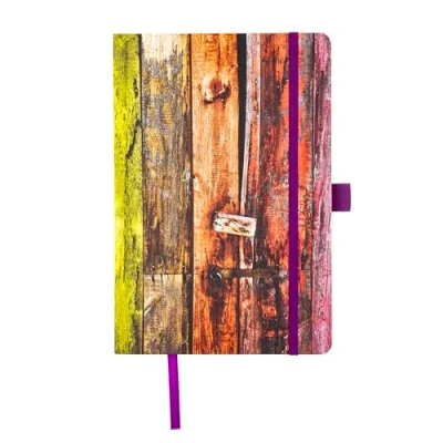 Notebook in the size DIN A5 (14 x 21 cm) 192 pages Pattern: dotted Motif "stripes" With elastic band, practical slip pocket, ribbon bookmark and pen holder Paper thickness approx. 80 g/m²