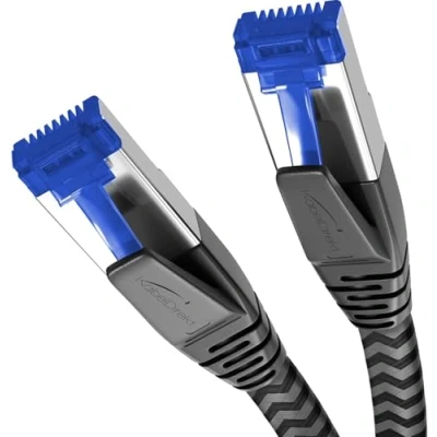 KabelDirekt Flat LAN Cable, flexible braiding 2x 2m (CAT7 Cable & Ethernet 10Gbps, highly ideal for installation, max fiber speed, RJ45 Black)