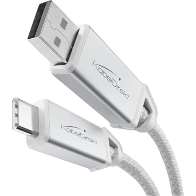 KabelDirekt USB A to C Cable 2x 2m (data & charging with Quick Charge 3.0, 36W for PCs, smartphones, tablets port White)