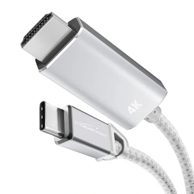 KabelDirekt USB C to HDMI Adapter Cable with metal connectors 2m (transfers 4K video at 60Hz from laptops/smartphones large TVs 3.1, Type C, Thunderbolt 3 White)