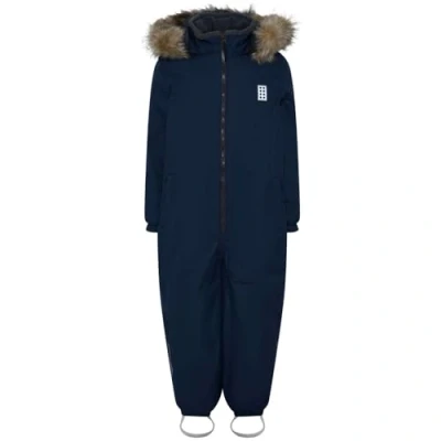 LEGO Wear snowsuit with faux fur trim on the hood. with taped seams and a 15,000 mm hydrostatic head. 100% waterproof, windproof and breathable with Bionic Finish ECO waterproofing with removable hood and quality reflectors buckles for attaching LEGO Wear gloves to the sleeves silicone foot straps