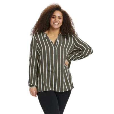 AmazonLong-sleeved shirt in plus size Striped pattern in different colours Adjustable sleeves with buttons Soft viscose fabric loose fit