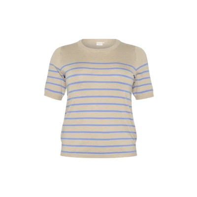 Kaffe Curve Lizzy Striped Print Tshirt, Women's, Size: 26, Feather gray mel blue