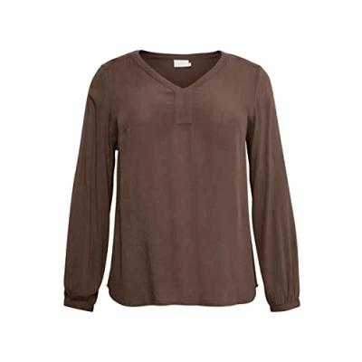 Kaffe Curve Women's Plus Size Blouse Long Sleeves V Neck Regular Fit Rounded Hem, Java, 14
